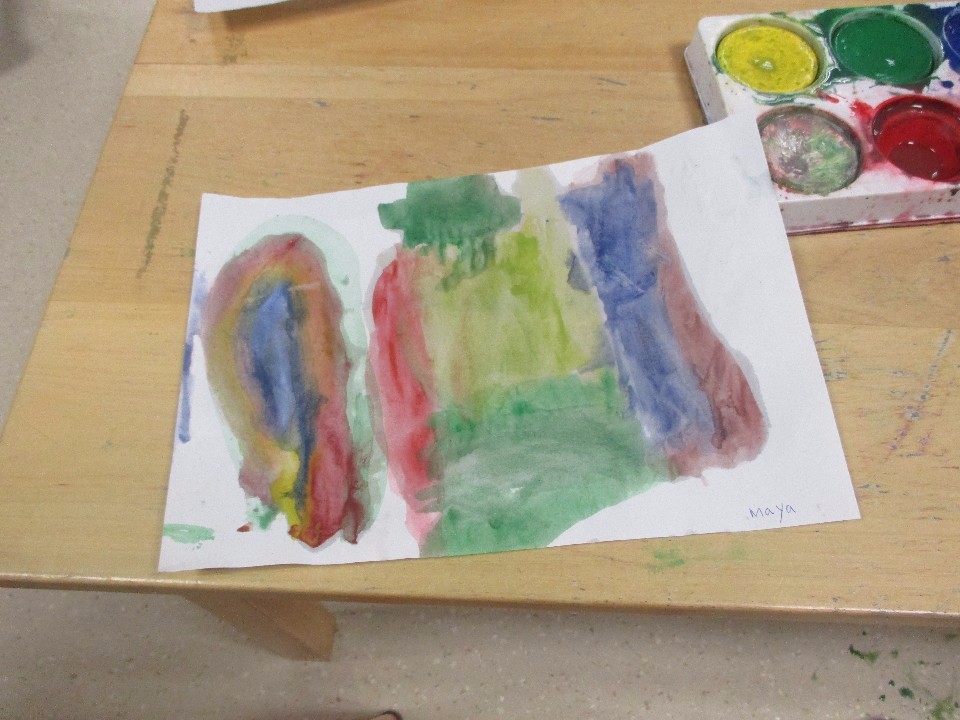 It’s a rainbow-I draw the colours. Maya proudly showed me her finished painting.